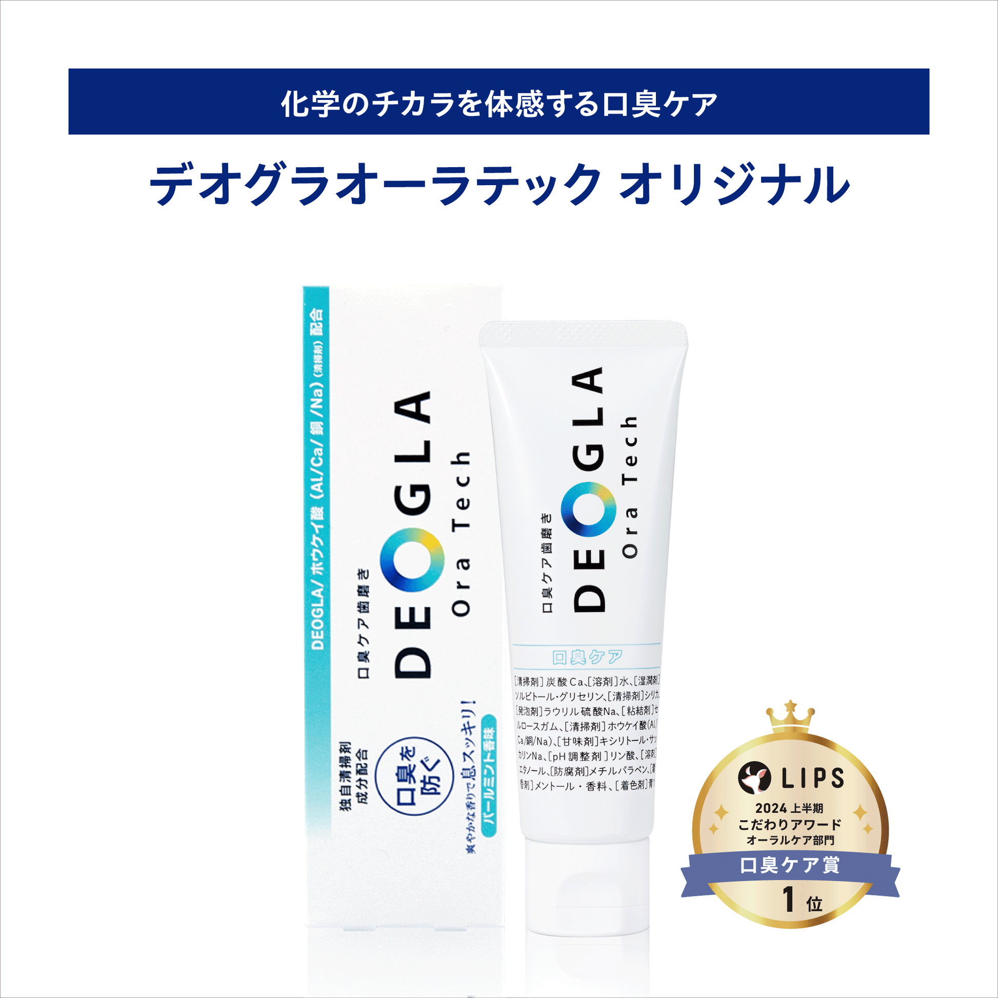 日常的に人が不快に感じる口臭の原因のひとつが、揮発性の臭い物質(メチルメルカプタンなど)の発生です。デオグラオーラテックでブラッシングすることで、原因*を除去。口臭を防いでスッキリした爽やかさが長く続きます。